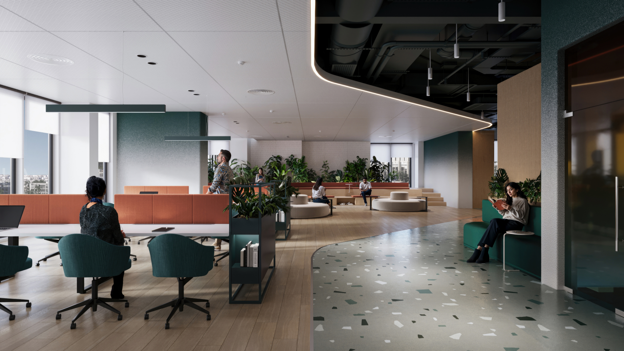 Experience the vibrant Eastmain through our 3D animations, blending business, retail, and leisure. Our visuals highlight its modern design, with loft offices, open spaces, and a 750-meter promenade.