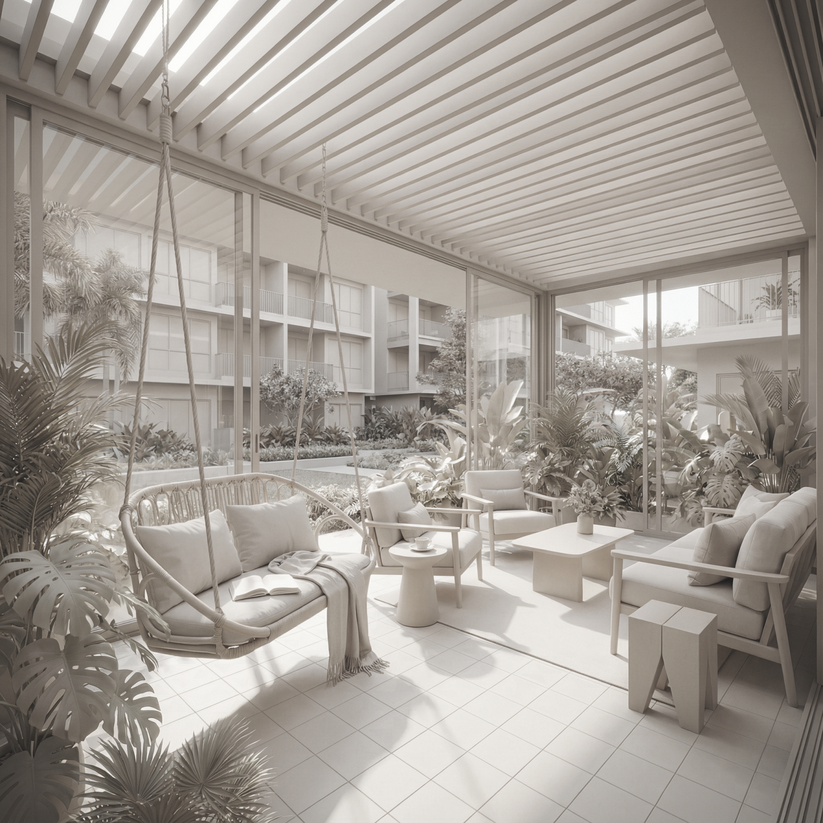 Our goal was to create a visual narrative that blends modern architecture with a calm, nature-driven atmosphere — a space that feels alive, warm, and timeless. Software Used: 3ds Max | Corona Renderer