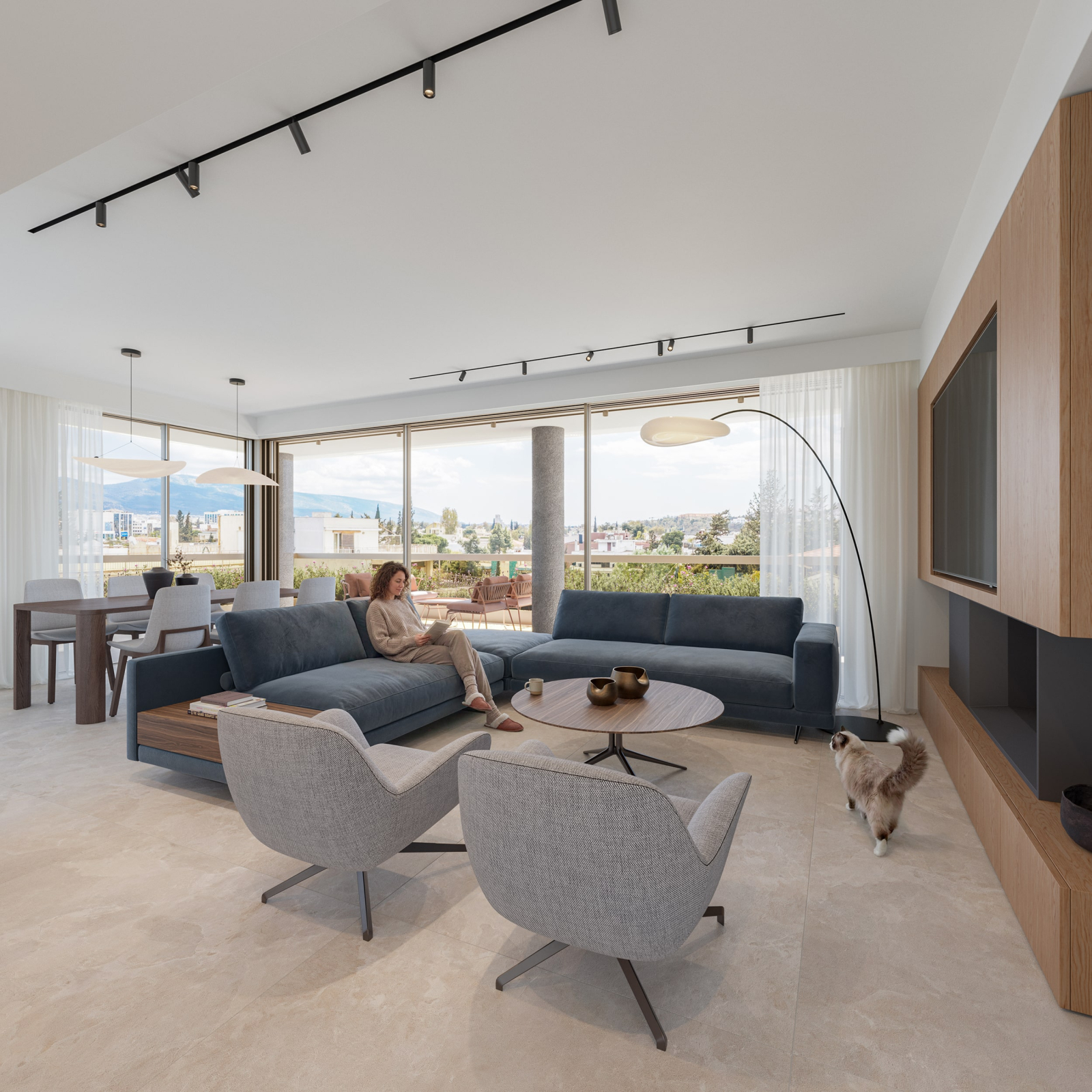 Located in Nea Filothei of Athens, this residential building, defined by geometric clarity and spatial openness, offers a refined urban living experience. Clean architectural lines, expansive glazing and integrated greenery articulate a minimalist yet expressive façade, while curated interiors with warm materials invite moments of stillness and everyday life. The goal was to create a set of interior and exterior images that move beyond conventional norms, revealing architecture through an alternative lens.