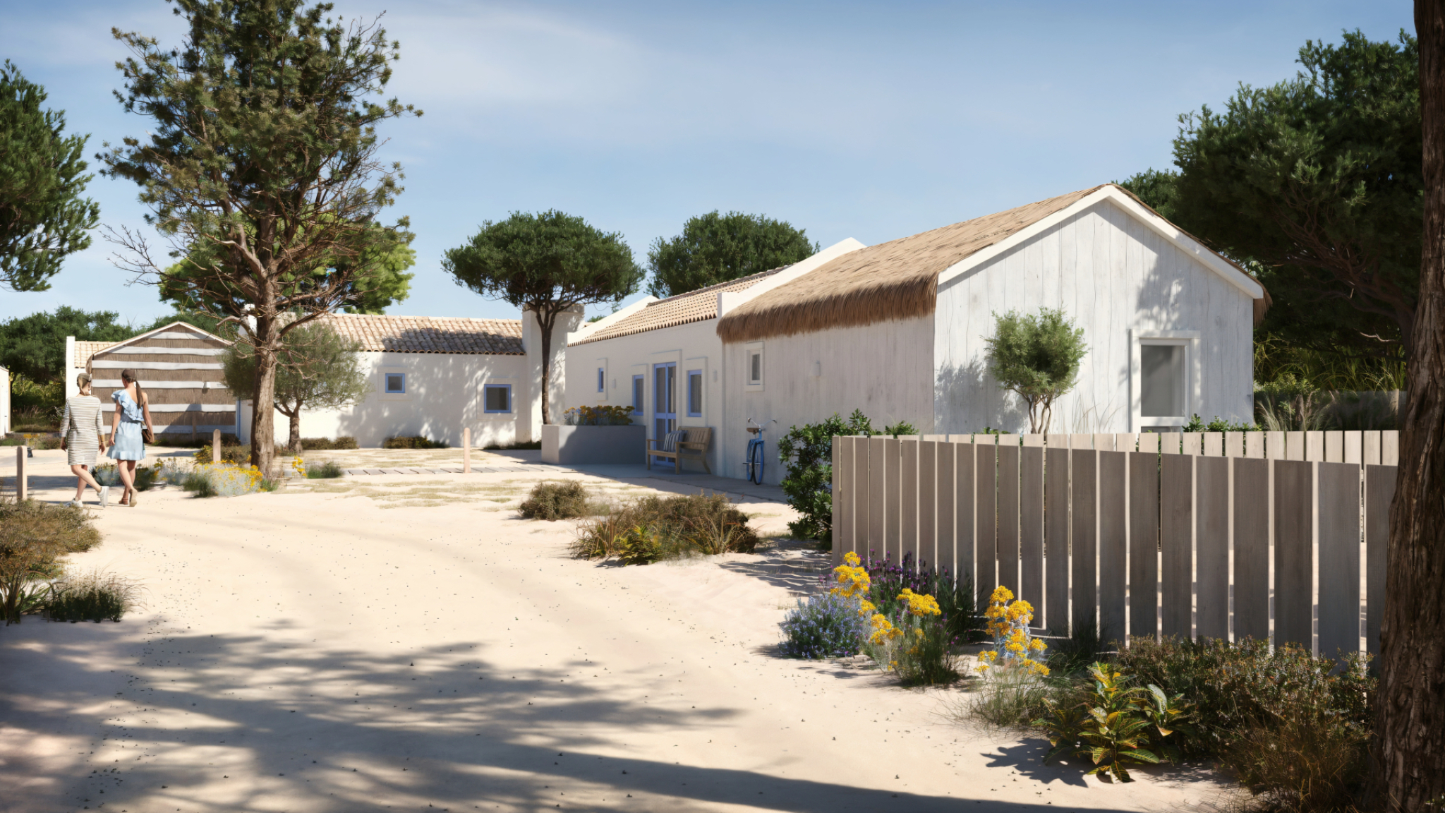 A tourist village in Comporta that incorporates traditional elements such as wood and thatch