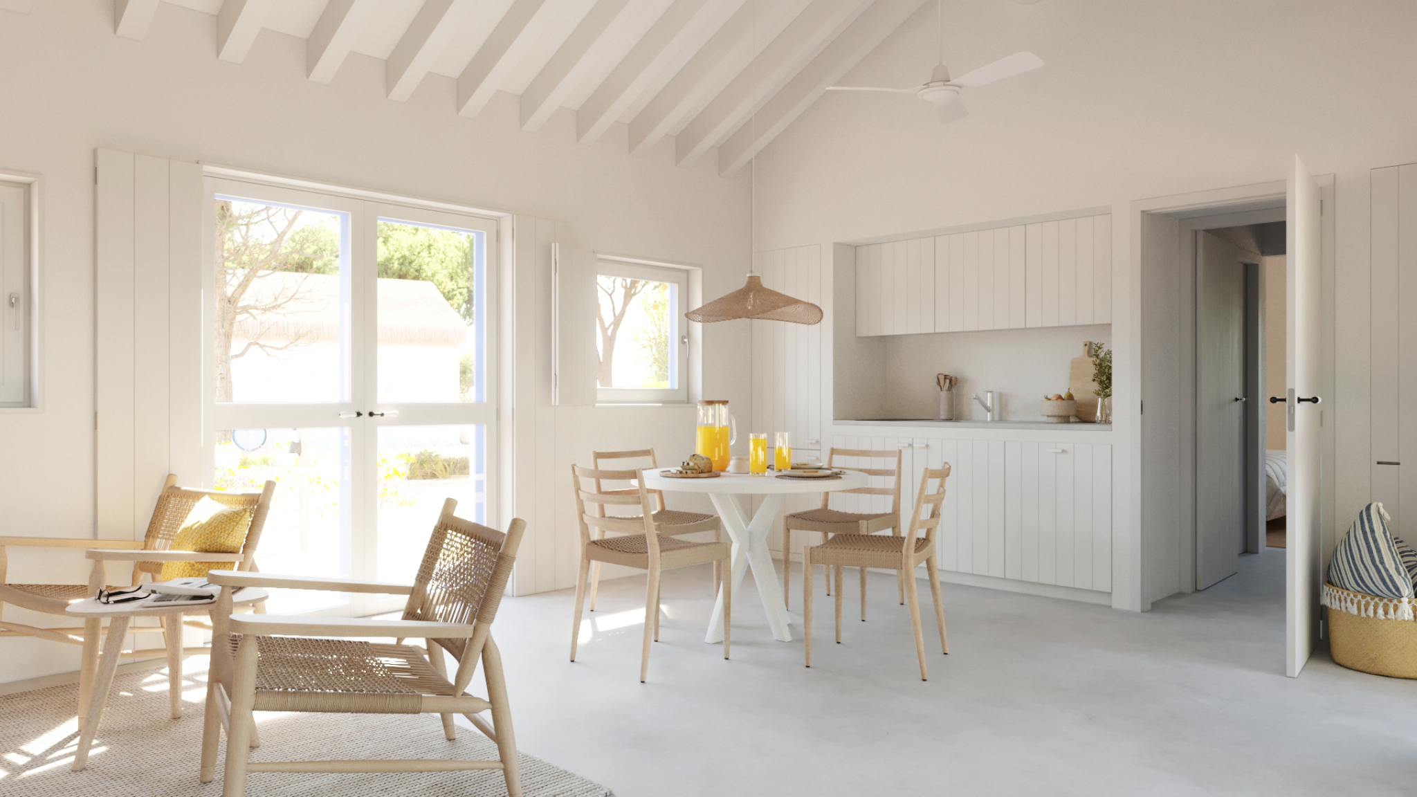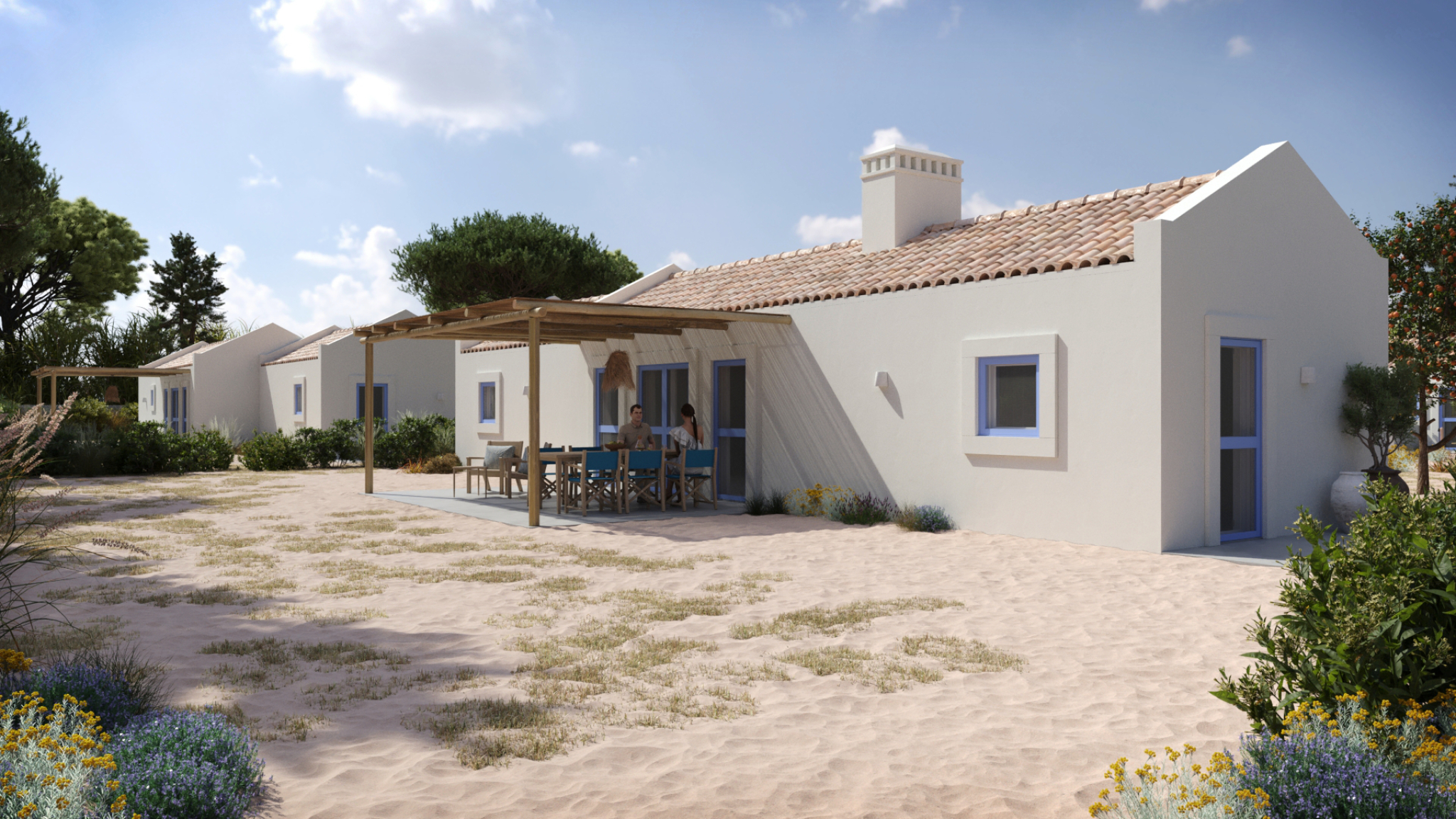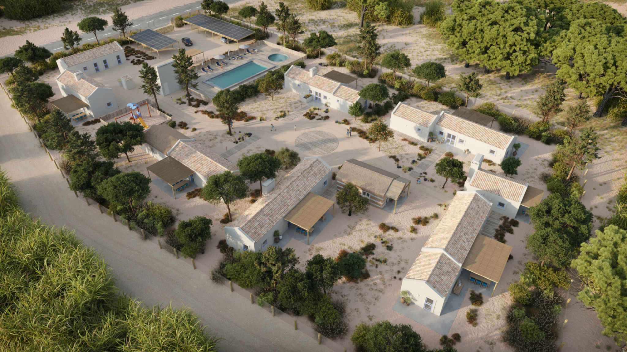 The visual strategy focused on enhancing the relationship between the built complex, the common spaces, and the natural landscape of Comporta. To this end, perspectives were explored that allow us to understand the organization of the village and how the different volumes integrate into the surrounding environment, as well as the spirit of the placeāthe soft light, the relationship with the landscape, and the experience of living in this environment.