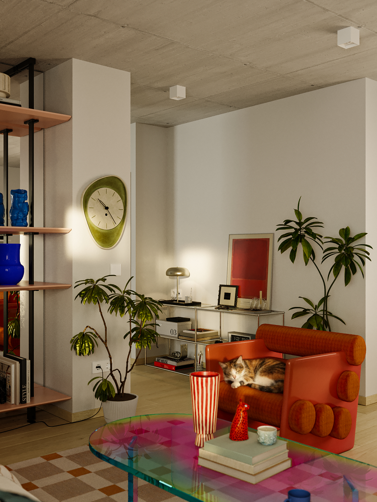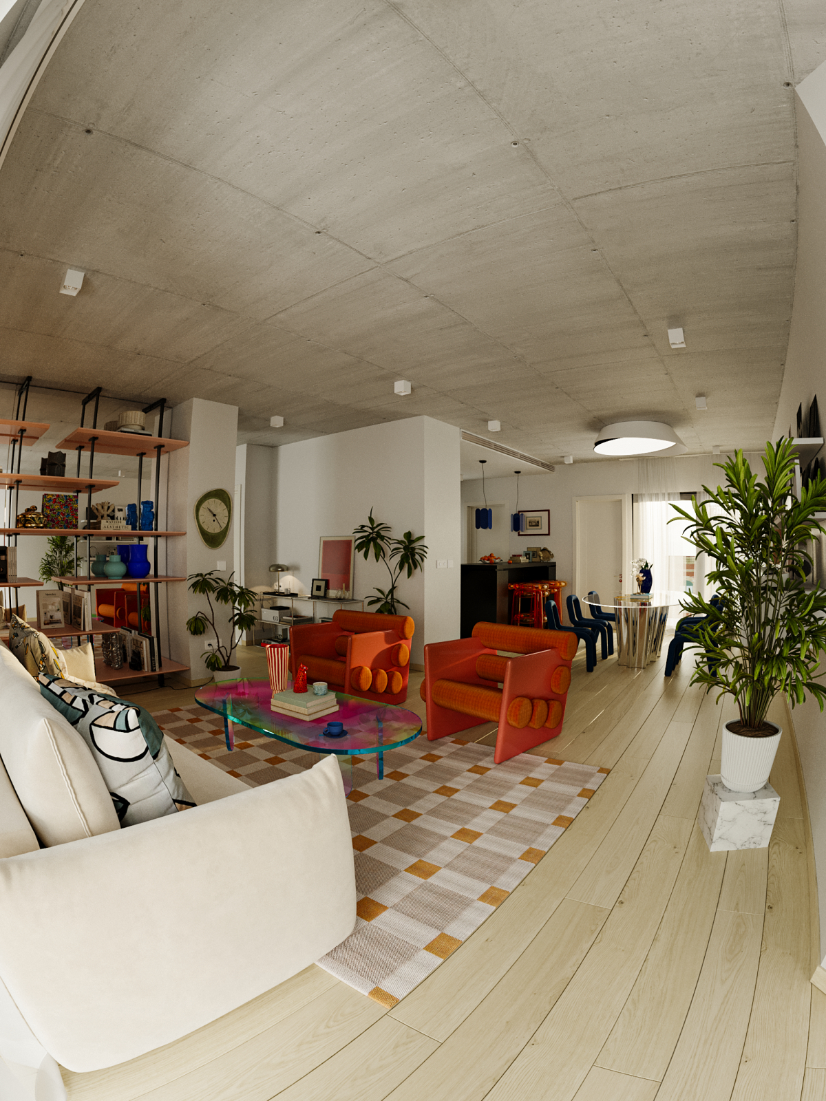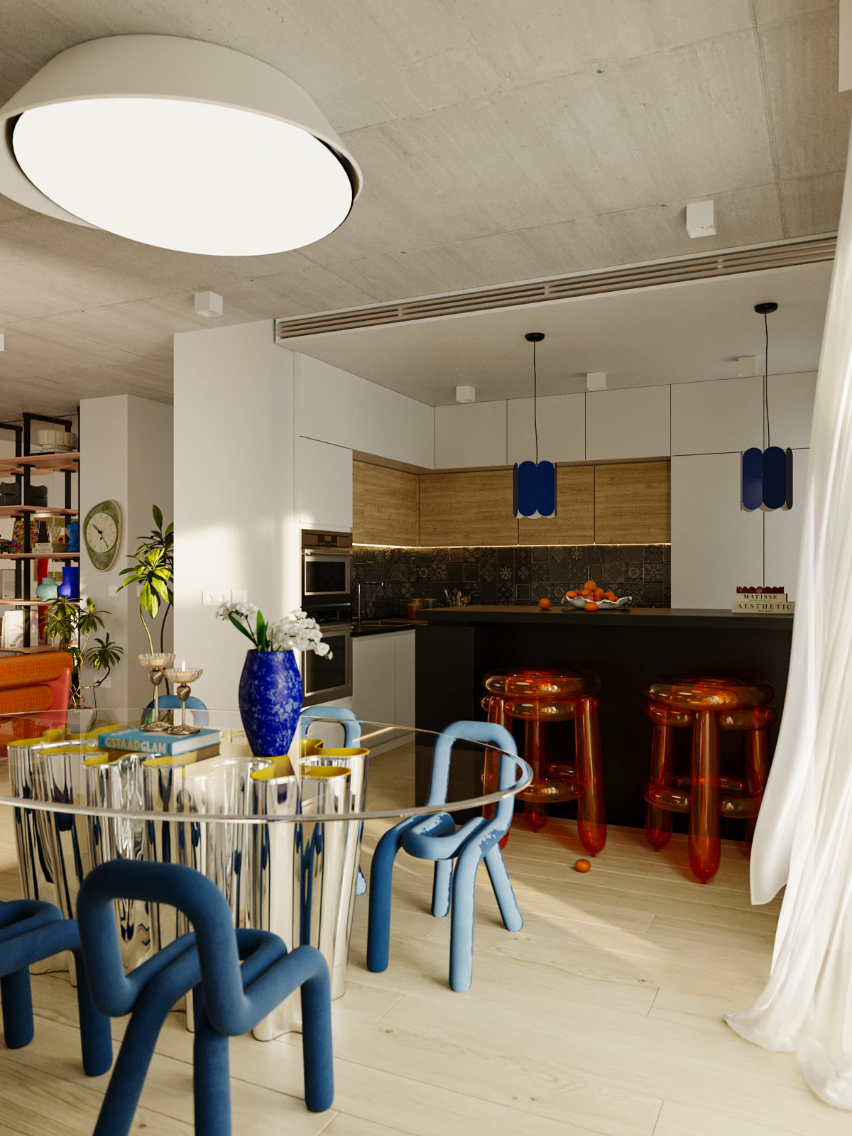 Azul Mandarina is an interior design project developed in an apartment in Mexico City. Its name comes from the color palette that defines the space, combining blue tones with orange accents to create a unique and vibrant atmosphere.