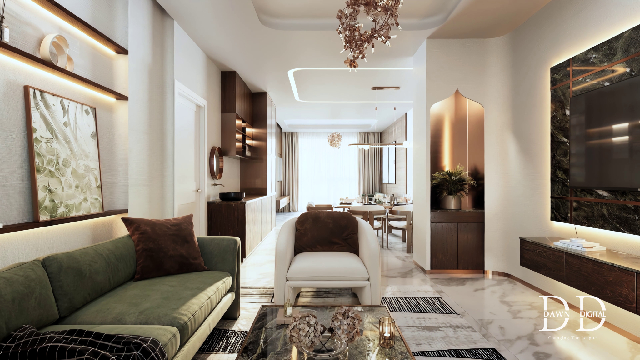 At Dawn Digital, our approach was to translate this scale into a visual experience that feels immersive and precise. Through cinematic CGI, we captured the rhythm of its soaring towers, the openness of its spacious residences, and the interplay of light across glass and structure.