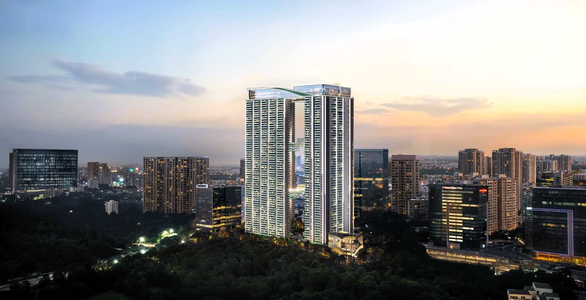 In the heart of Hyderabad’s Financial District, Nova by Raghava rises as a bold expression of vertical luxury. Set across a sprawling 7-acre site with two high-rise towers reaching over 60 floors, the project defines a new scale of urban living — expansive, elevated, and thoughtfully composed.