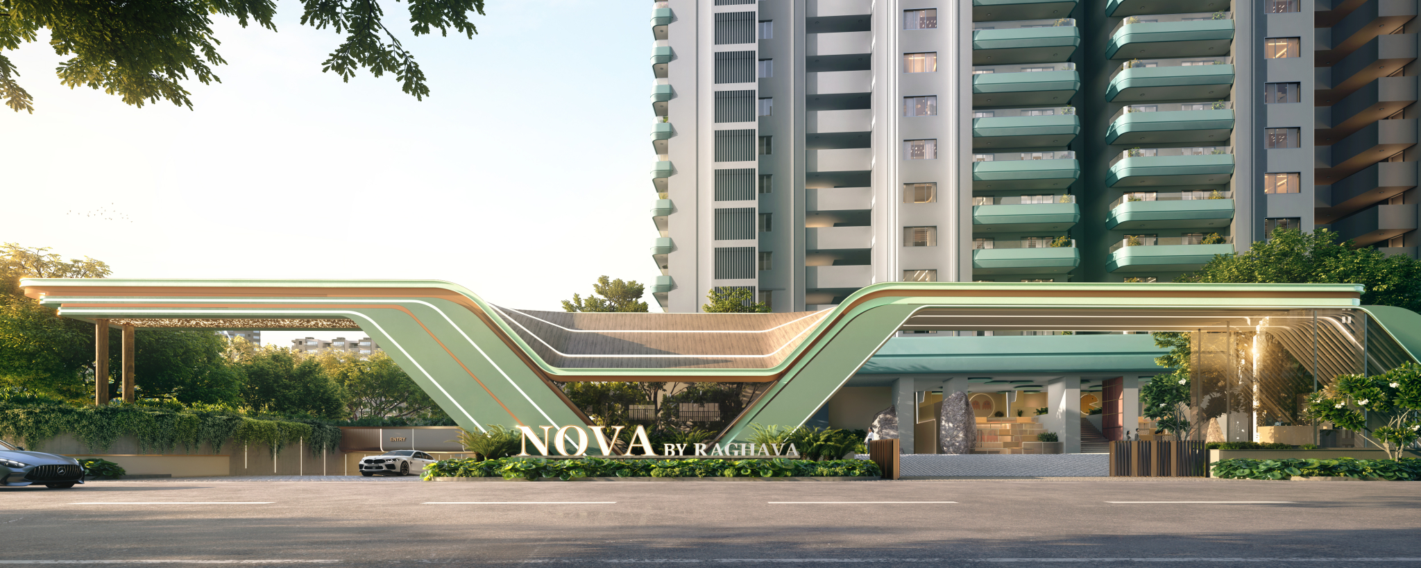 WAVE by Raghava Projects | CGI Walk-through showcasing the elegant landscape design and modern architecture through immersive 3D visuals.