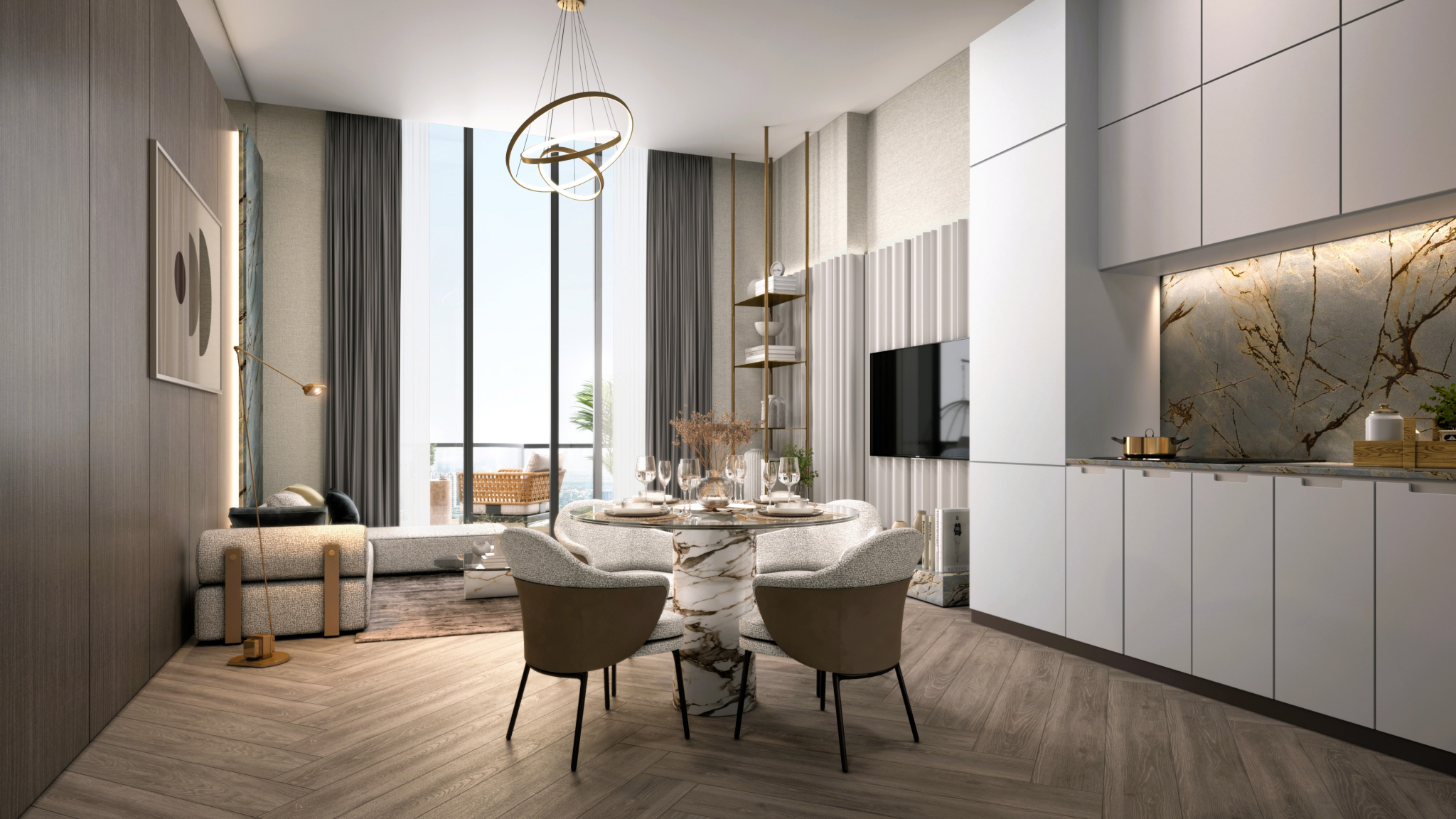 Dawn Global’s CGI vision translates every design element—from the sun-kissed balconies to the breezy interiors—into visuals that evoke a sense of home, lightness, and belonging. Each angle was composed to feel cinematic, yet rooted in realism—where warm tones meet textural finesse, and facades breathe in the Dubai sun.