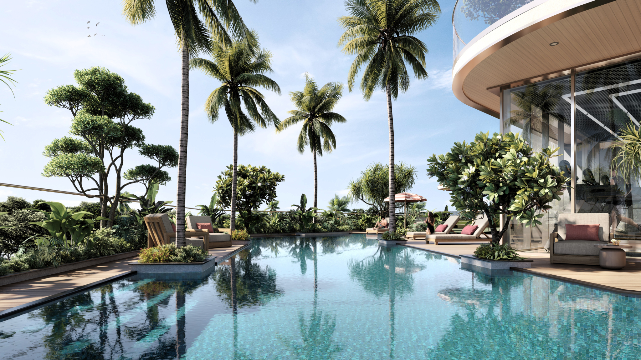 A stunning 3D CGI masterpiece showcasing modern elegance and tropical serenity, where every detail brings the beauty of paradise to life.