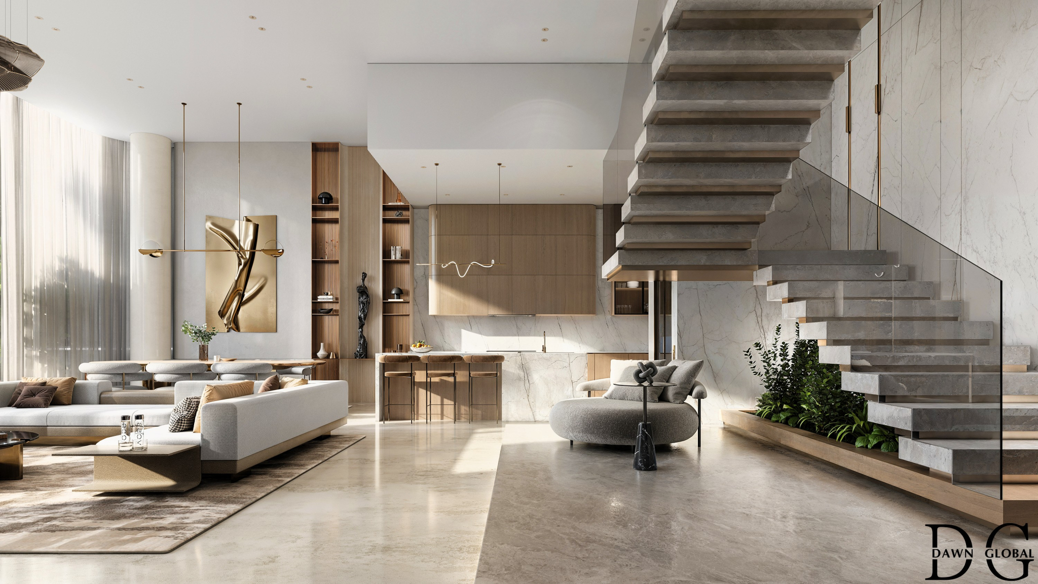 From the fluid geometry of the facade to the tranquil rhythm of the interiors, Dawn Global’s visualization approach emphasized both form and feeling. Our team focused on capturing natural materiality, ambient calm, and the understated rhythm of luxury—showcasing The Tides not just as a place to live, but as a state of mind.