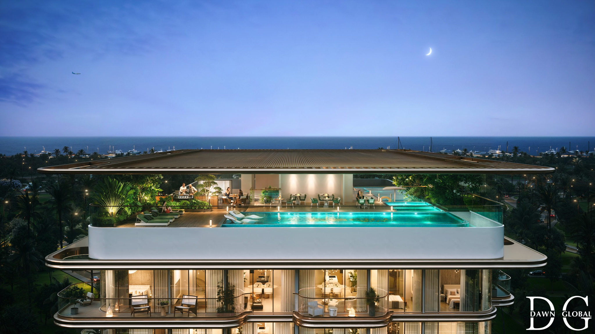 Dawn Global was invited to bring this architectural vision to life through a seamless blend of CGI imagery and cinematic walkthroughs. Every frame was approached as a moment of immersive storytelling—where sunlight kisses textured stone, balconies echo ocean breezes, and still water reflects the future of island life.