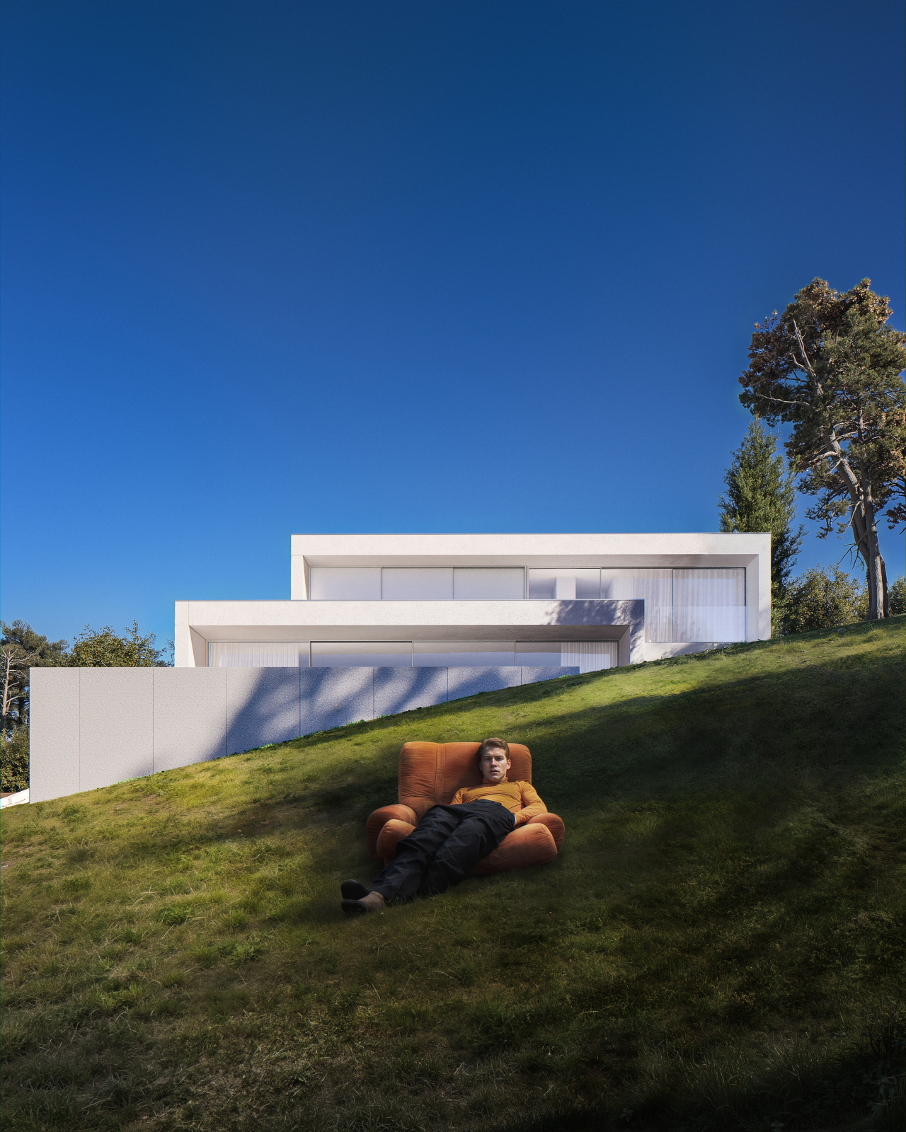 His idea was to design a house for a client who works as a fashion photographer with a space that stays true to its surroundings while also serving as a beautiful backdrop for his personal photoshoots and small gatherings.