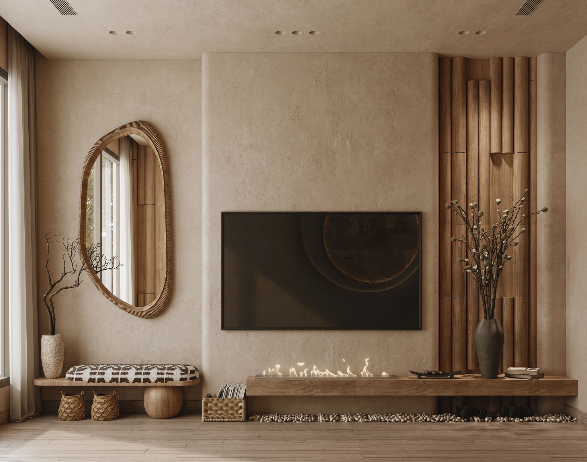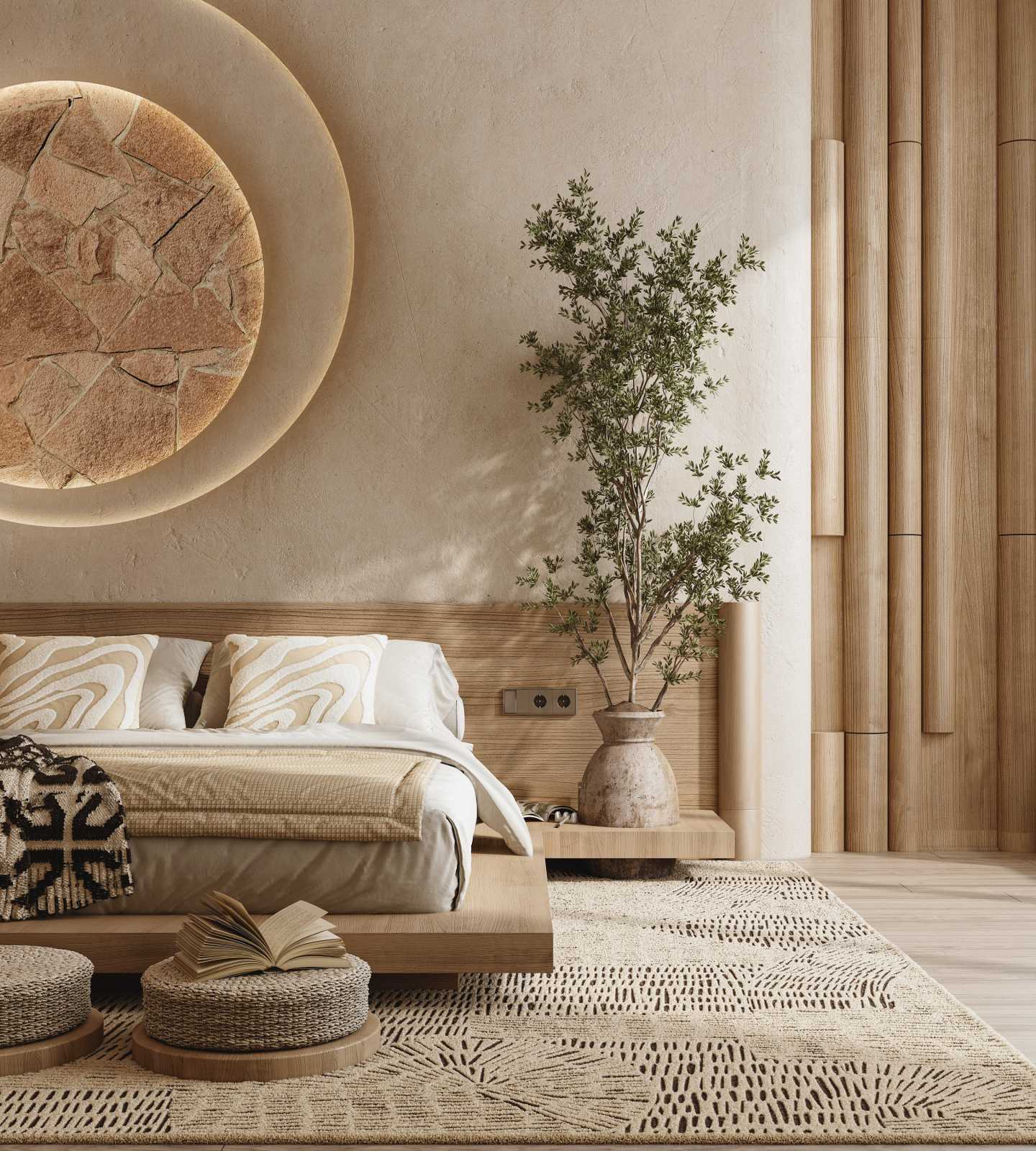 A serene blend of Japanese minimalism and Scandinavian warmth, this design study brings calm, balance, and natural elegance into the heart of the home.