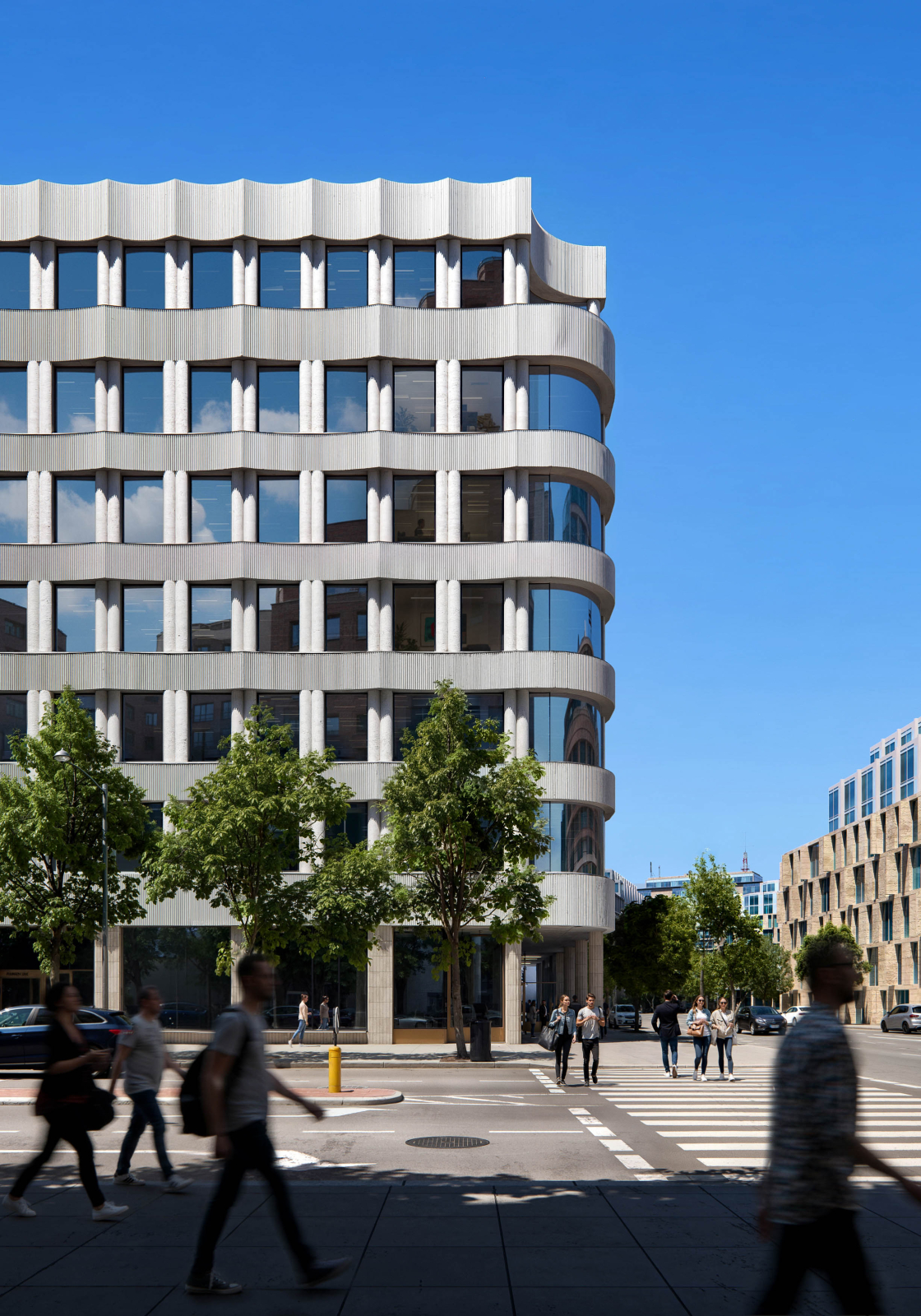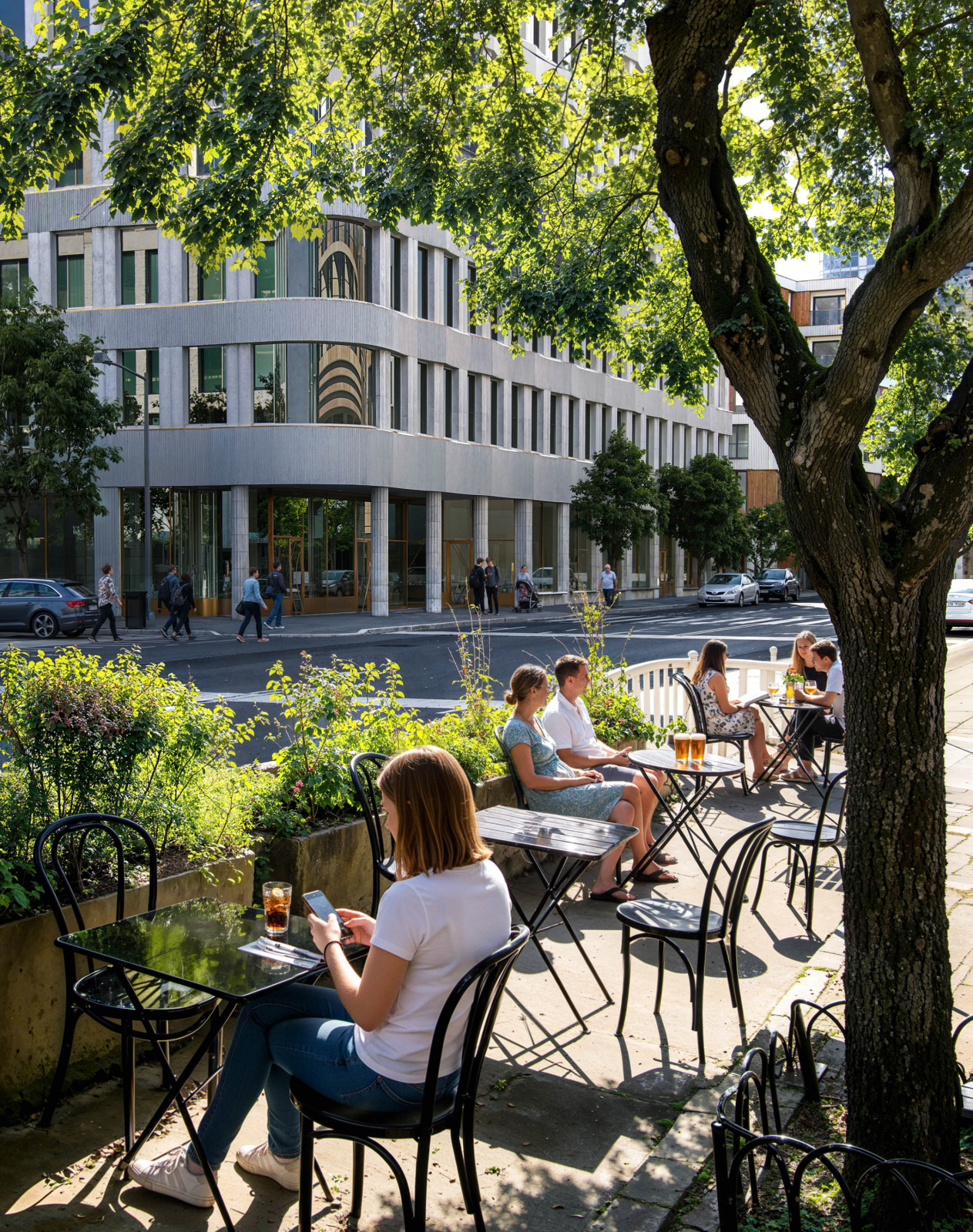 Street scene featuring a corner building in Sweden.