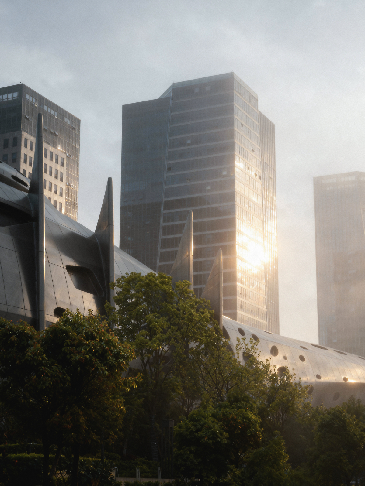 Diffuse light reflections take over the urban landscape, at different moments in the day the building reacts to a city full of activity. -Performing Art Centre - Taipei - Taiwan 3Dsmax / V-ray / Matte Painti