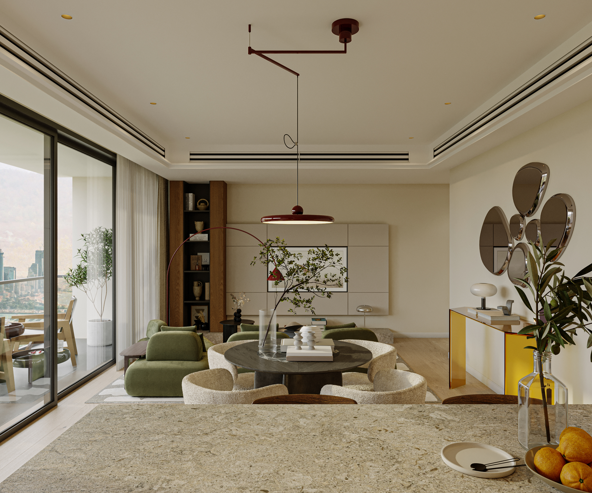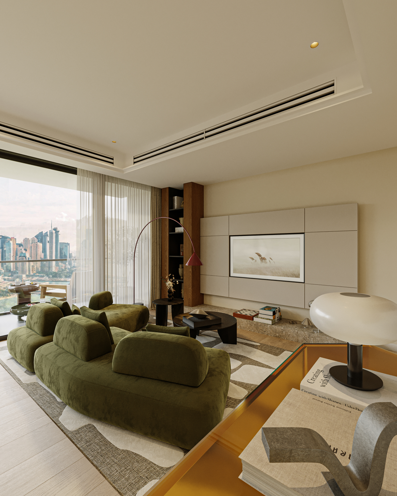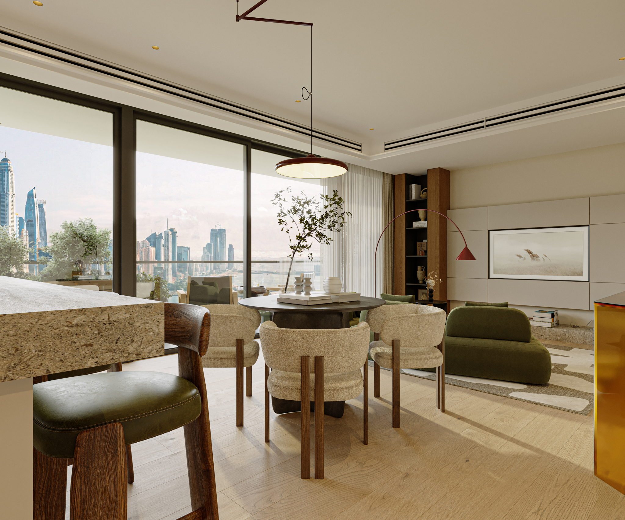 "The Marina Shores apartment" is a meticulously curated residential interior project designed to reconcile the vibrance of urban living with the primal need for a personal retreat.