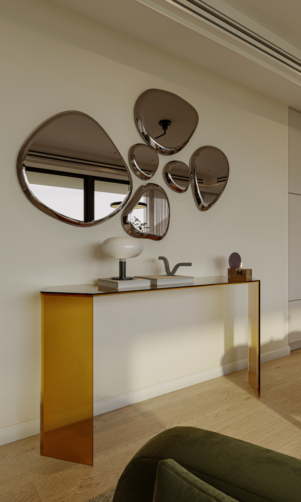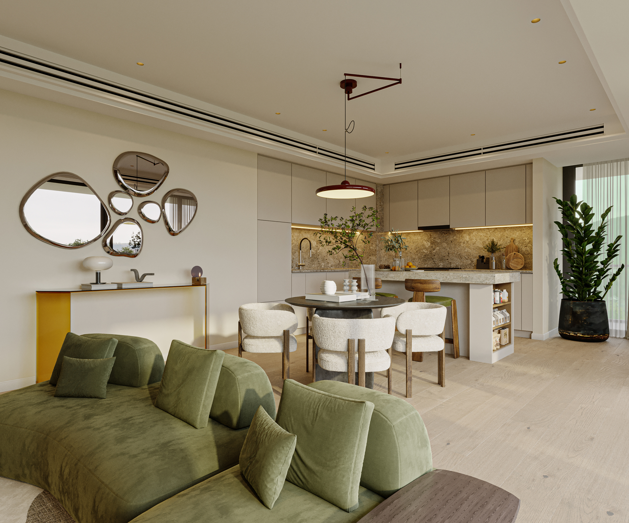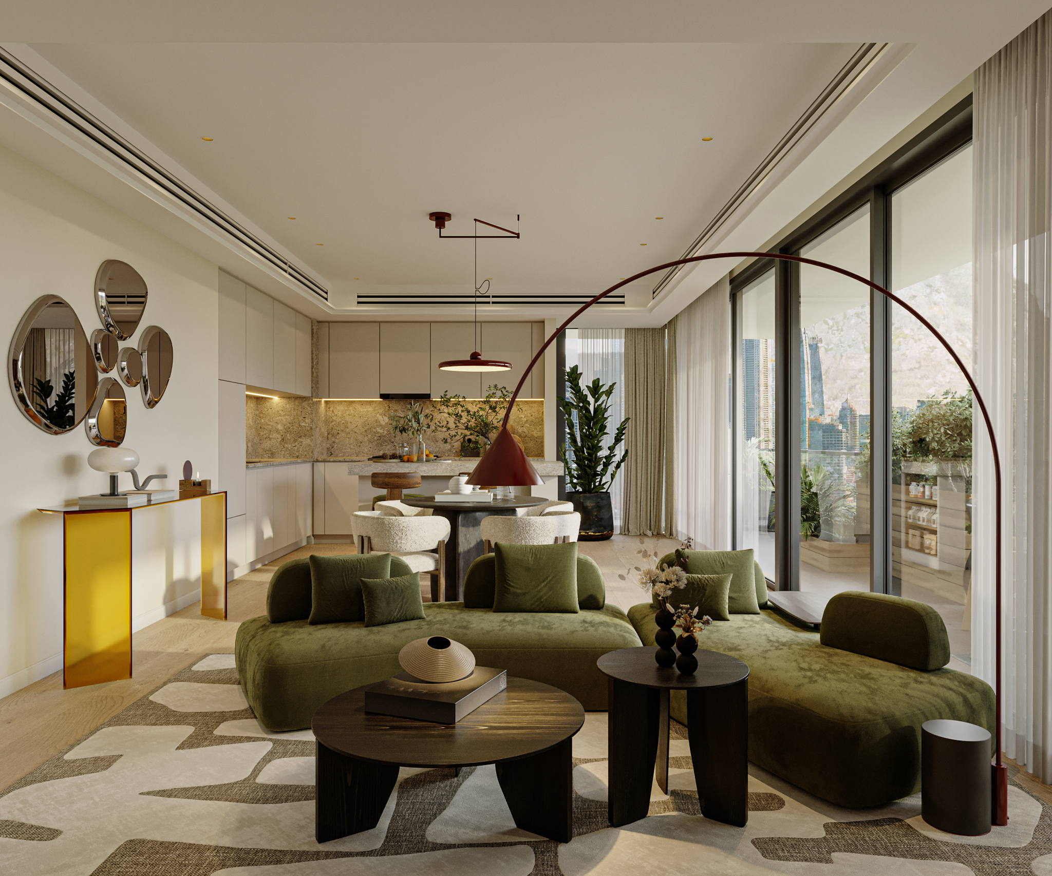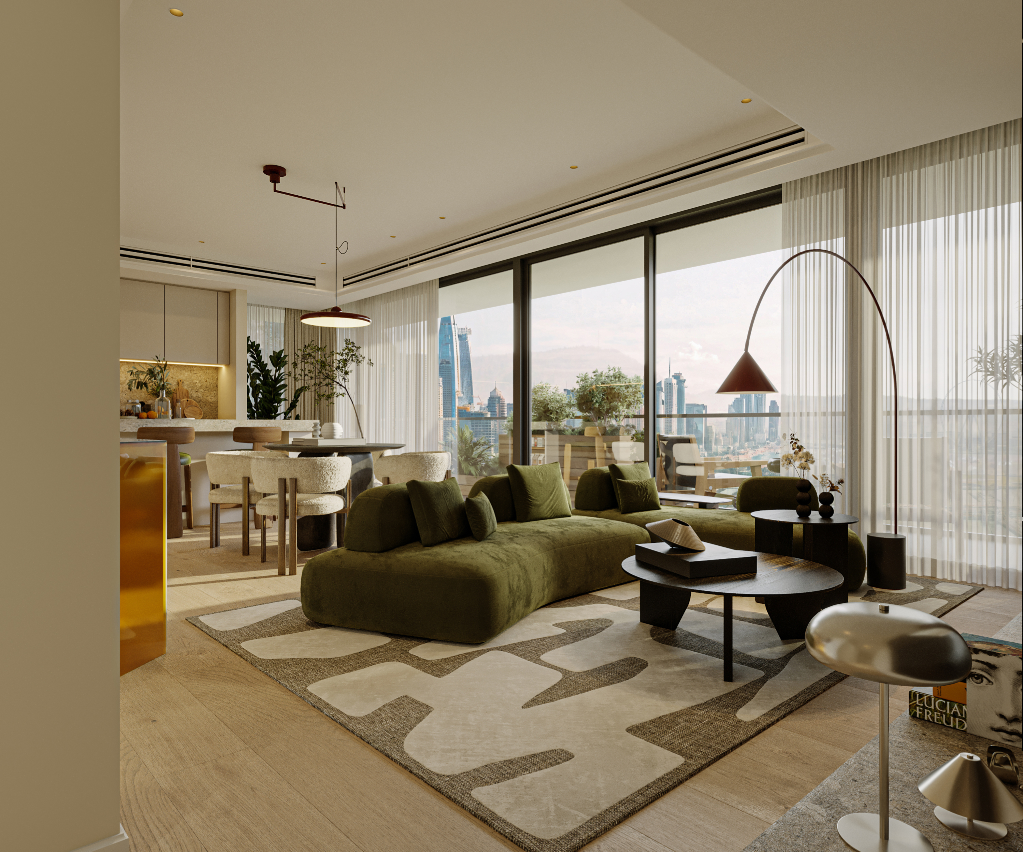 "The Marina Shores apartment" is a meticulously curated residential interior project designed to reconcile the vibrance of urban living with the primal need for a personal retreat.