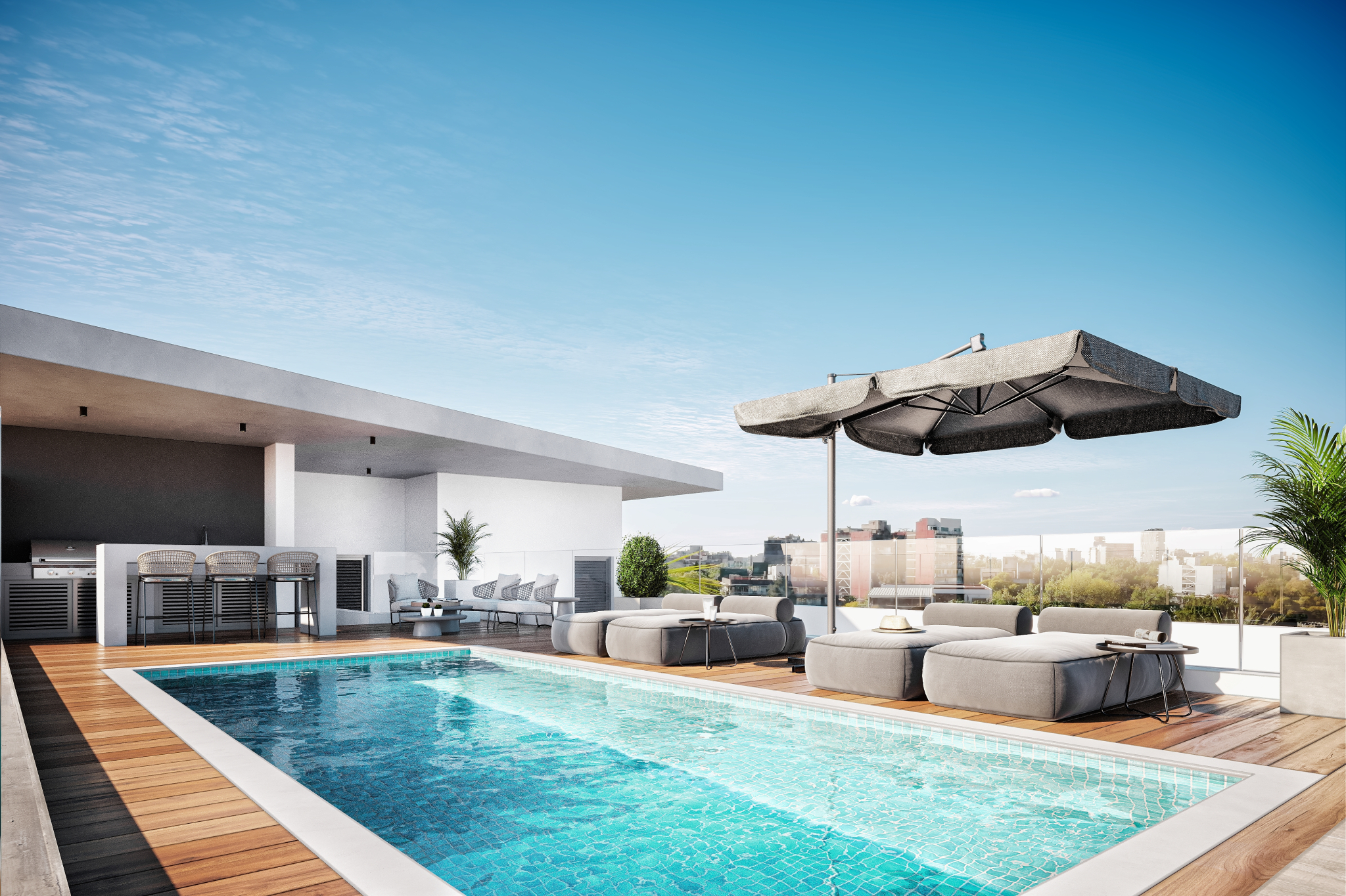 The Nest , a modern flat complex with sinuous balconies and a shaded terrace in Nicosia. Our studio visualized the architect’s concept and made CGI shots in different light conditions and from different angles.